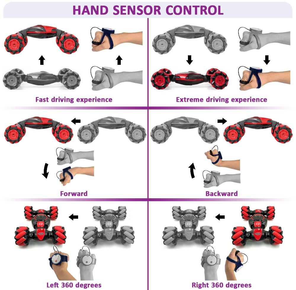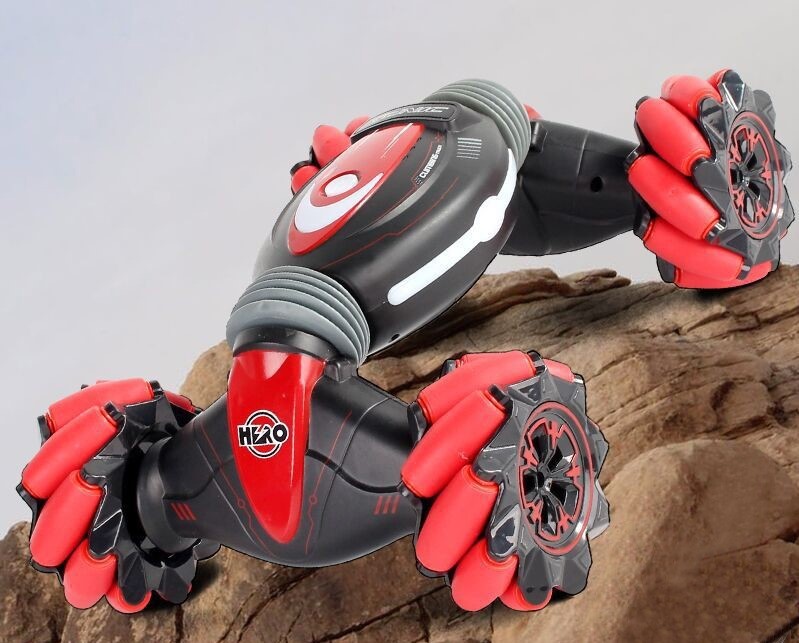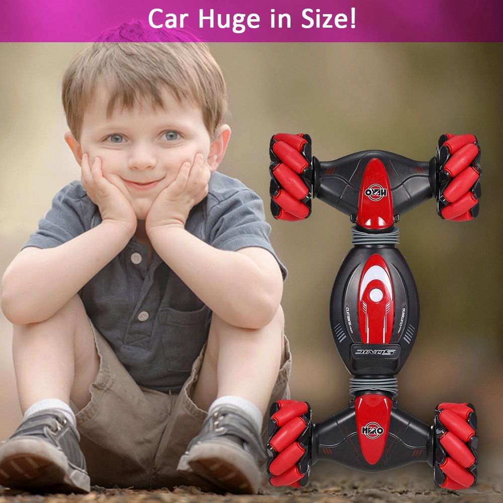 An Amazing Stunt Car! This Car is totally awesome and a must-have. It does 360 Turns, Flips. Can run on any type of terrain. Plays music and has glittering blue and red lights. It does wobbling in the middle of the Car. It does double-sided Roll doing its Insane Stunts. The wheels are Soft, Elastic, and Rubber Tires that can go over any land, hill, grass, and dirt with Ease but with Power. And then comes the best part Hand Gesture Wrist controller. It has a hand seized controller to control the car with gestures of the hand. It is a wonderful way to control the stunt car. Just a riffle of your finger or the turn of your wrist. This car is Just Amazing It is for children age 4 and up. The adults are going to enjoy this too. It’s fun for the whole family to play and enjoy