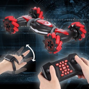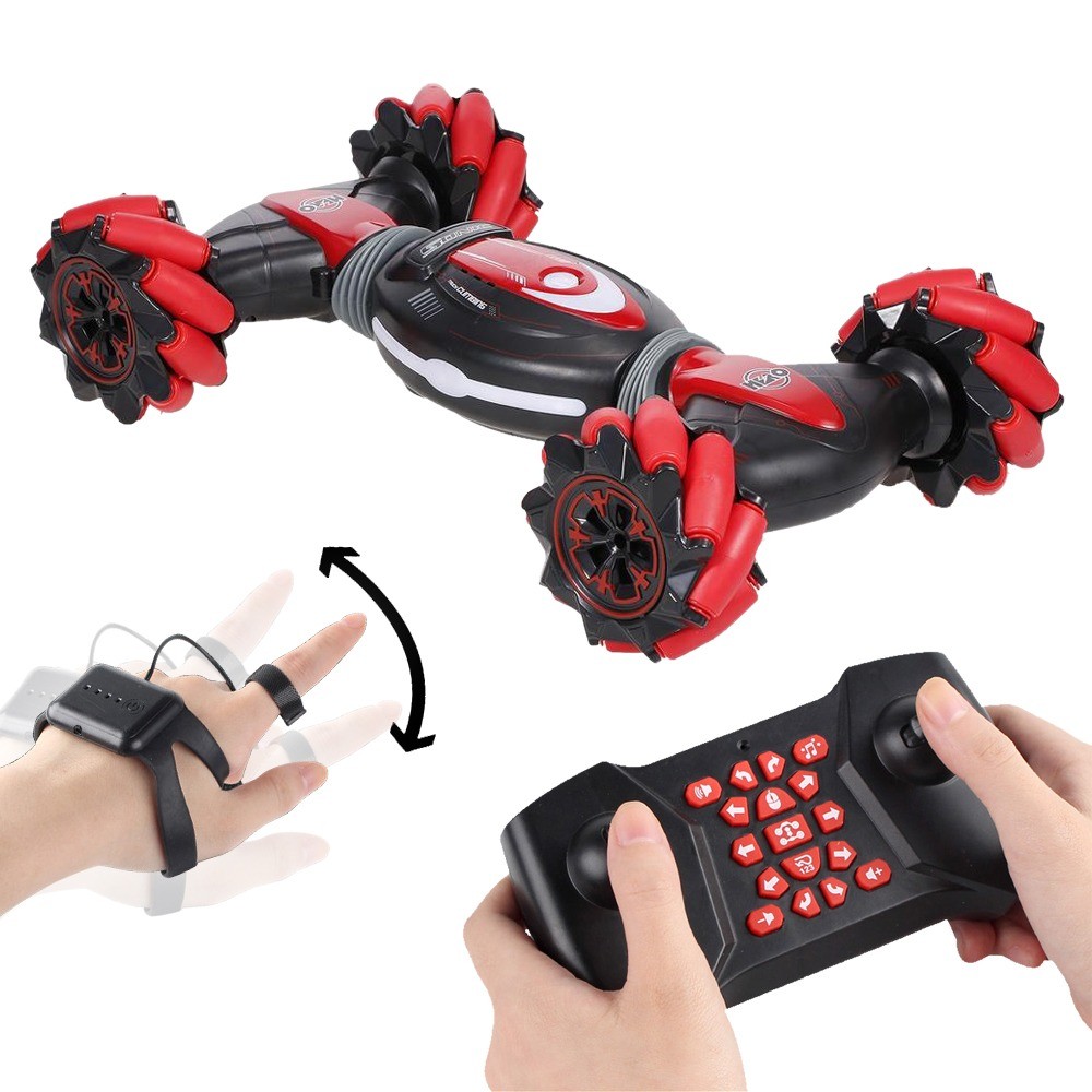 An Amazing Stunt Car! This Car is totally awesome and a must-have. It does 360 Turns, Flips. Can run on any type of terrain. Plays music and has glittering blue and red lights. It does wobbling in the middle of the Car. It does double-sided Roll doing its Insane Stunts. The wheels are Soft, Elastic, and Rubber Tires that can go over any land, hill, grass, and dirt with Ease but with Power. And then comes the best part Hand Gesture Wrist controller. It has a hand seized controller to control the car with gestures of the hand. It is a wonderful way to control the stunt car. Just a riffle of your finger or the turn of your wrist. This car is Just Amazing It is for children age 4 and up. The adults are going to enjoy this too. It’s fun for the whole family to play and enjoy